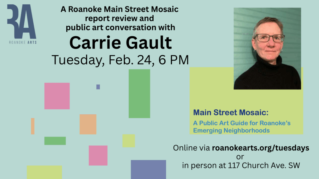 JAN 30, 7 PM – Arts Connect Tuesday The Roanoke Cultural Endowment (hybrid – online & 117 Church Ave.)